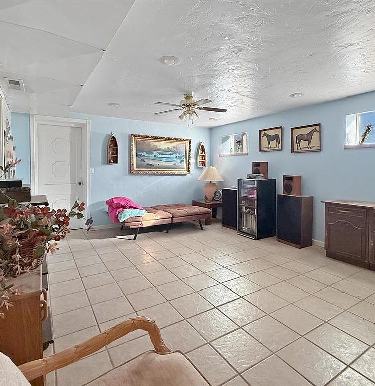 This expansive lower level radiates calm with serene sky-blue walls and durable tile flooring throughout. Textured ceilings add architectural dimension while natural light filters through multiple windows, creating a bright, open layout perfect for games, hobbies, movie nights, or whatever your family's interests demand.